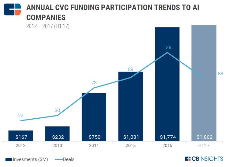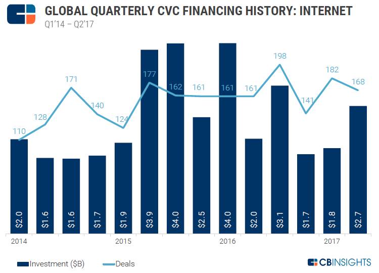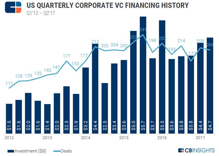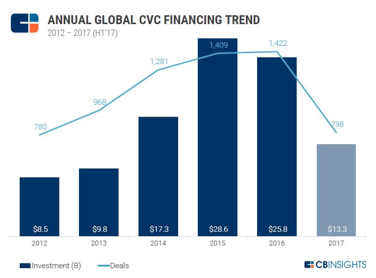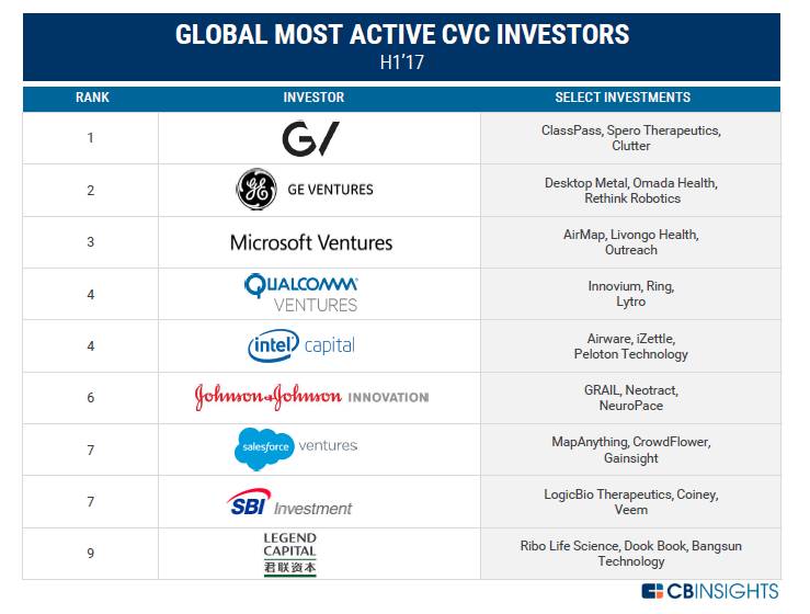 参考来源:CB Insights, “The H1’17 Global CVC Report”.