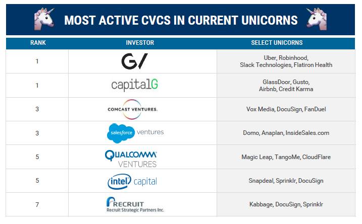 Google Ventures和Alphabet旗下另一个投资机构Capital G还并列成为投出独角兽最多的CVC。