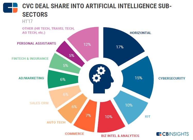 在人工智能行业下的细分领域中,除了通用技术之外,网络安全成为CVC最关注的垂直领域。