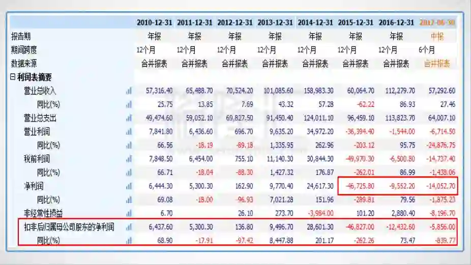不过,相较于其大起大落的业绩表现,则就有点令人唏嘘了。尤其是看近几年,可以说是连连亏损,亏出来新境界。