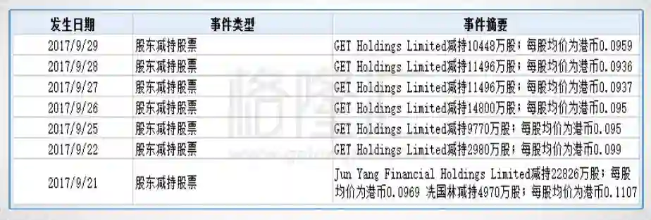另外还可以看到,位列50名单中现已经被证监会勒令停牌的第一信用(08125.HK),自9月起智易控股(08100.HK)及君阳金融(00397.HK)也曾相继减持其在第一信用的持股。