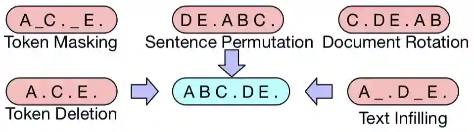 与目前仅适合特定噪声机制的去噪自编码器不同,BART 可应用于任意类型的文档破坏。