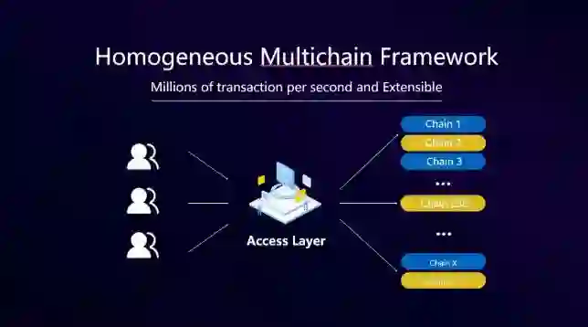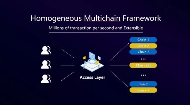 以迅雷链为例,下面来解读下如何提升性能。首先从架构上优化,提出同构多链的框架。即系统由一条条相对独立(独立进行共识)的链组成,每条链有多个节点,每个节点被分配到其中一条链上,不同的账户数据被锚定在不同的同构链上,然后接入层将交易路由到发送方所在的链上进行区块打包与共识。系统中链的数量能够按业务需求动态增加。因此同构多链的架构首先保证了系统的可扩展性。