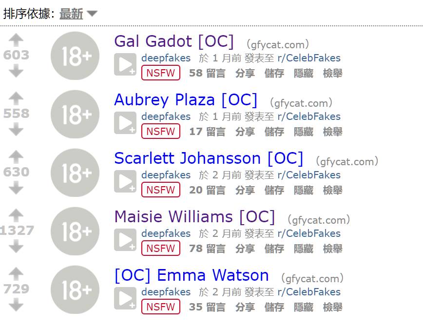 后来,火锅和我说,这个板块里出现了一个 id 叫 deepfakes 的大神,他发了一些内容,直接吊打了其他人。。。