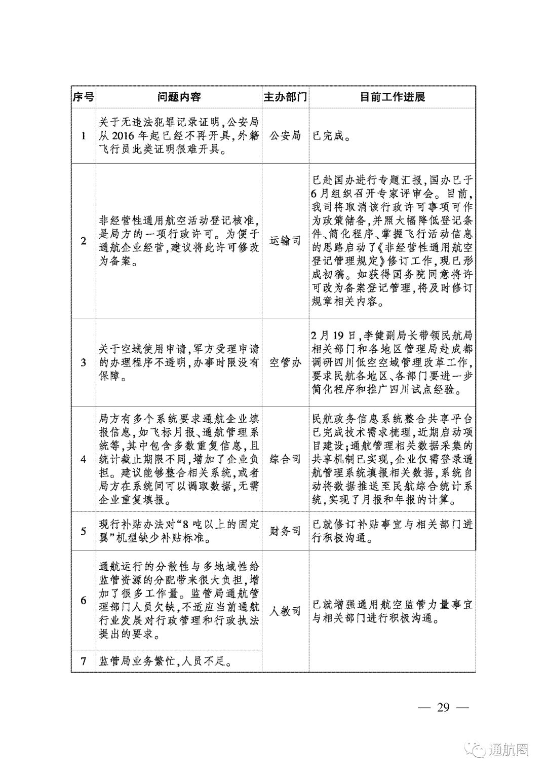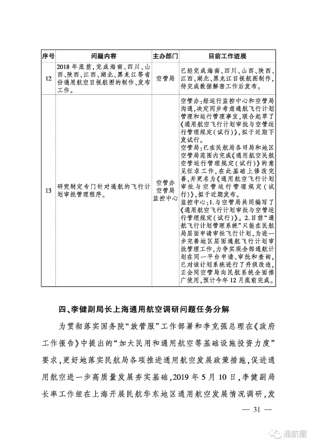 此外,简报还详细介绍了通用航空工作领 导小组各成员单位工作情况、13项由综合司移交运输司的重点督办事项进展情况、李健副局长上海通用航空调研问题任务分解,更多简报内容请见以下全文: