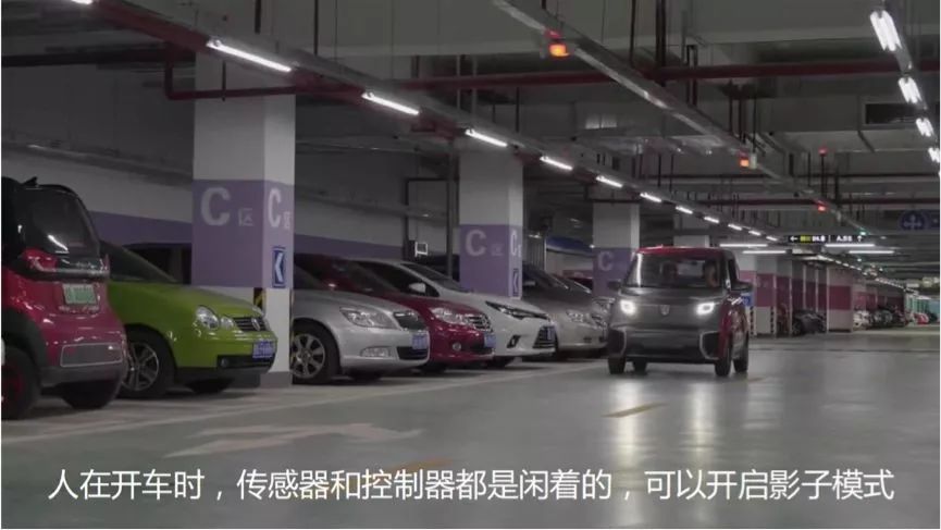 一种是影子模式,主驾驶系统人在开,无人驾驶系统在影子下面开。这是我们部署的一套系统,这辆车部署了自动代客泊车,人把车开到电梯口就下车了,用手机一键让它去泊车。