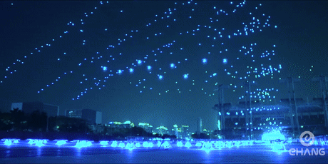 2016年开始,亿航率先在国内开始无人机编队表演,即通过无人机搭载LED呼吸灯,在夜空中不断变化造景,达到宣传目的。