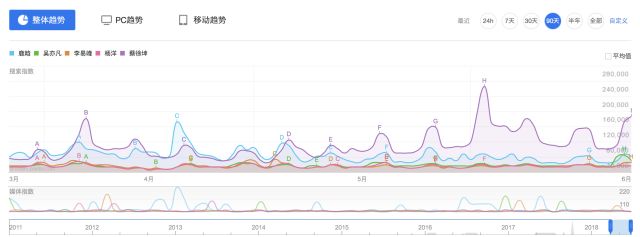 江山代有流量出,长江后浪推前浪。蔡徐坤从4月份C位出道开始,百度指数、全网热议指数力压「四大流量」,俨然一副新流量king的势头,而这批新鲜的男生女生似乎也成为新的流量担当。