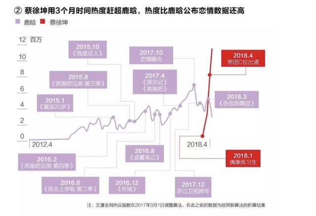 媒体开始研究「蔡徐坤用三个月时间热度反超鹿晗,热度比鹿晗公布恋情还高」。