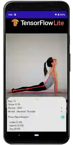 为简化姿态分类流程,我们还发布了 Colab notebook,该工具能够教您如何通过结合 MoveNet 和 TensorFlow Lite,并根据自定义姿态数据集来训练自定义姿态分类模型。这表示如果您想要识别瑜伽姿势,您需要做的就是收集您想识别的姿态图像并为其添加标签,然后按照教程进行训练,接着将瑜伽姿势分类器部署到您的应用中。