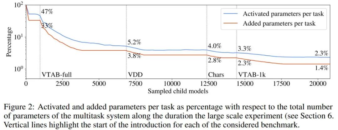 作者表示 µ2Net 可以在大型任务集上实现最先进的质量,并能够将新任务动态地引入正在运行的系统中。学习的任务越多,系统中嵌入的知识就越多。同时,随着系统的增长,参数激活的稀疏性使每个任务的计算量和内存使用量保持不变。通过实验,每个任务的平均增加参数量减少了 38%,由此产生的多任务系统仅激活了每个任务总参数的 2.3%。
