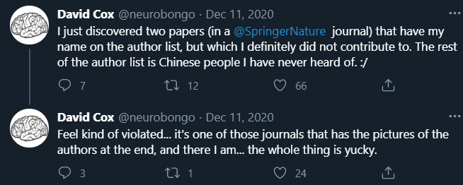 几年前「被」发表了两篇论文,与素不相识的中国学者「合著」两次,自己竟毫不知情。这是「合著者」还是出版商的锅?