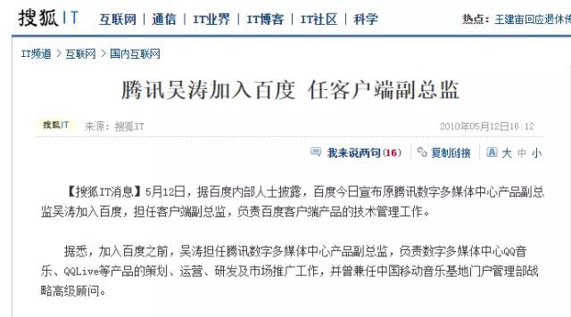 当时辗转找到他们的技术总监,他当时已经辞职回深圳了。我让他来北京聊了一趟,邀请他加入百度,职位上按百度经理级进来,组织结构上也给了他足够的自主权,他同时负责产品技术两块。