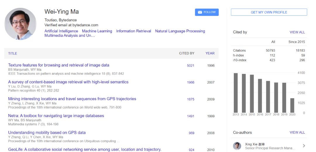 博士毕业至今,马维英一直活跃于业界的研究部门,先是在惠普实验室工作了四年,然后加入了有中国互联网「黄埔军校」之称的微软亚洲研究院,而且一待就是 16 年。2017 年,时任微软亚洲研究院常务副院长的马维英加入了字节跳动。