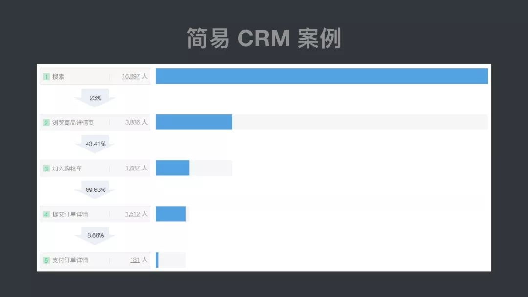 对于做 To B 的公司来说,传统的 CRM 都是非常复杂的。但是我们借助现在的分析工具是可以实时生成漏斗和业务流程 track 起来。