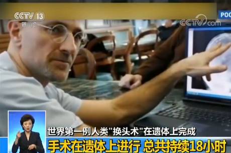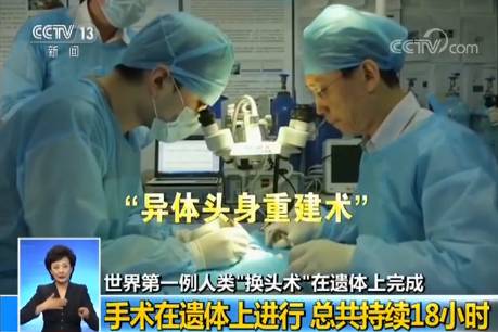11月19日,央视网发布视频新闻《中国教授完成全球首例人类“换头术”耗时18小时》,在中国哈尔滨医科大学任晓平教授的指导下,一项名为“异体头身重建术”的手术在一具遗体上进行,持续了18个小时后,世界首例人类头部移植手术完成,连接了切断的脊椎、神经、组织和血管。对此,意大利神经外科专家塞尔吉奥·卡纳韦罗表示,此次手术的成功意味着,我们距离未来人类活体头部移植手术又近了一步。