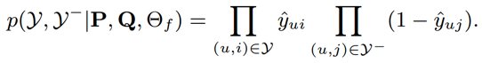 那么实际上相当于认为预测的 yui 是以 f(u,i|θ) 为均值的高斯分布,而这样的假设显然是不适合二值的隐式反馈。所以我们可以将待遇测的值看做是一个分类问题,即用户和项目是否有交互。