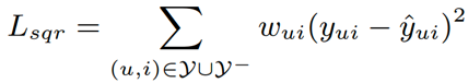 由于本模型使用的是隐式反馈(1/0),如果使用平方误差函数: