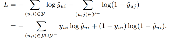 使用逻辑回归进行训练,得到一个二元交叉熵损失,其中 Y- 可以是全部或者部分的负样本(也会就是负采样方法):