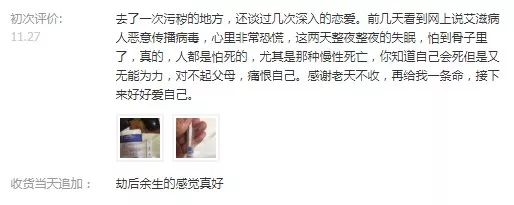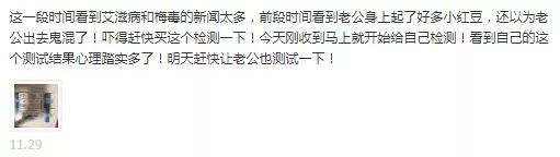 从购买产品后买家评价看,很多人购买该产品都是因为看到男/女朋友、妻子/丈夫、性伴侣某些症状、某些行为或自身不检点性行后对感染艾滋病的恐惧而购买,也有部分买家是为了显示对男/女朋友、丈夫/妻子的负责而购买。