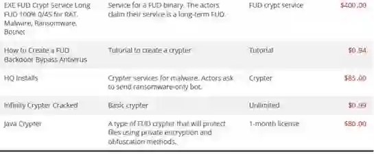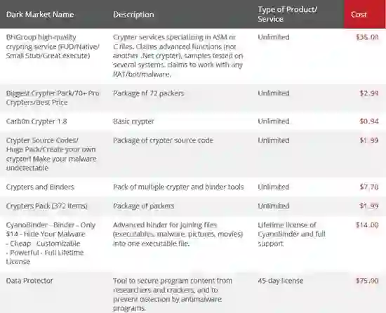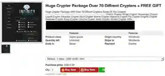 有时可以以较低的价格获得逃避工具。 一些编译好的crypters和packers的卖家可能是在互联网上购买或窃取的,捆绑在一起,然后提供捆绑销售。