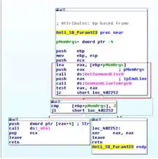 2016年8月,Locky开始使用命令行参数来规避自动沙箱分析。没有命令行,样本将不会在系统上运行,载荷将不会被解码进内存。