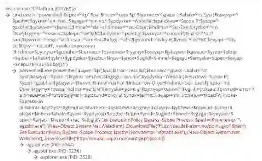 我们现在发现PowerShell用作感染载体。在一个样本中,一个简单的JavaScript文件运行模糊过的PowerShell命令,以从外部IP地址下载打包或包装过的文件。该文件将恶意DLL注入合法进程,绕过所有保护。这种恶意软件类型并不是完全的无文件化,但仍然有效。