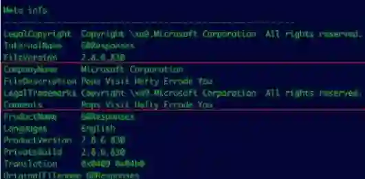 大多数恶意软件使用假元数据来显得合法。元数据包含有关FileVersion,CompanyName和Languages等信息。其他样本使用被盗证书看似合法。