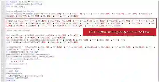 图14一个Locky感染载荷对函数使用基本的Unicode和随机字符串的混淆方法。