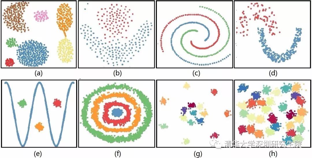 图为高维密度聚类算法在仿真数据集上的聚类效果