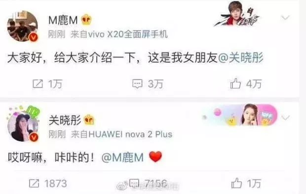 而上一次微博的崩溃,则是鹿晗与关晓彤公布恋情,双方公开恋情所发微博的小尾巴,是各自代言的产品,鹿晗是vivo X20,关晓彤是华为nova 2 Plus。微博崩溃后,以至于后来网友发图称,有微博程序员在新婚现场被抓去修复微博。