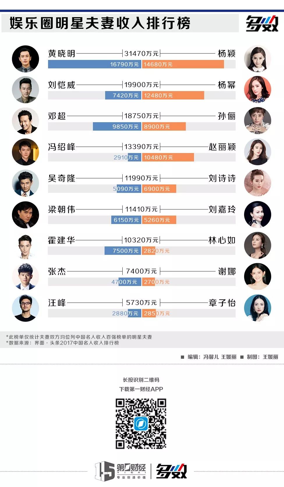 ▲此表单仅统计夫妻双方均位列中国名人收入百强榜单的明星夫妻