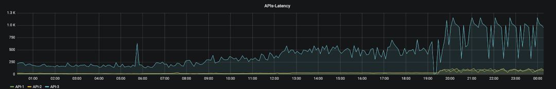 观察API延时:(API请求延时变化明显,API-3延时更加严重)