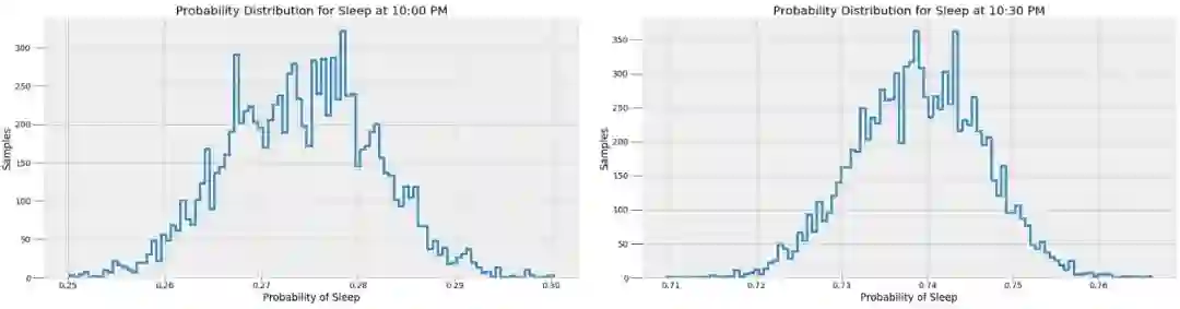 通过查询模型,我们可以找出在给定时间我睡着的概率以及最有可能醒来的时间。