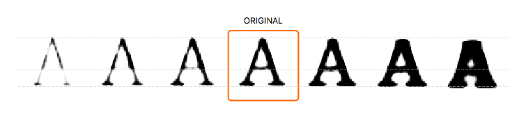 保留包围的负空间的启发并非推理而来。但是,许多专业字体都这么做了。如果你仔细查看了上面的示例,会很容易看出原因:它提高了清晰度。在训练过程中,我们的生成式模型自动从所见的例子中推断出了这一原则。然后,我们的加粗界面将其提供给了用户。