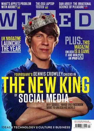 投资者为 Foursquare 描绘了更大的想象空间。Foursquare 发布六个月后,就拿到了第一笔融资。2010 年 6月,Foursquare 拿到 2000 万美元的 B 轮融资。克劳利头戴王冠登上《连线》杂志英国版封面,标题赫然写着 The New King of Social Media(社交媒体的新王),那是 Foursquare 最风光的时候。广告主看上了这种能够精准定位用户个人兴趣爱好的产品,一夜之间,LBS(Location Based Services)的签到模式被竞相模仿。