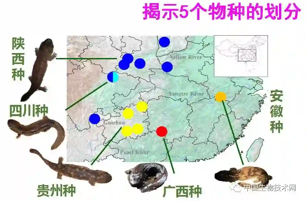 研究揭示中国大鲵至少由5个物种(有可能为8个)组成