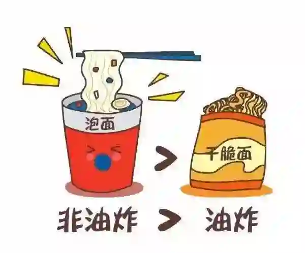 购买泡面时,选购非油炸面饼的泡面。方便面面饼油炸大多使用棕榈油,同样的油炸了多少面饼、炸了多久并不为消费者所知,所以为了保证健康,最好购买非油炸面饼的泡面产品。