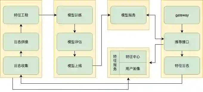 特征的提取和构造单独抽出来,作为一个服务,客户端先请求特征服务,由特征服务构造特征并请求模型预估服务。这种方案下特征处理在模型外部,输入到模型的是处理好的数值特征。