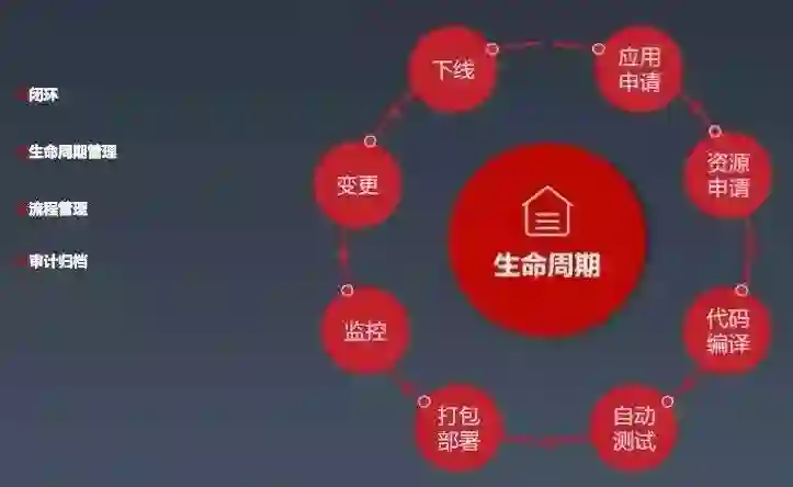 比如我们在发布应用的时候,从应用的申请、资源的申请,到代码编译、测试,甚至到监控,变更,一直到这个机器下线、应用下线,我们都整合到 DevOps 平台,这样就做到了闭环。
