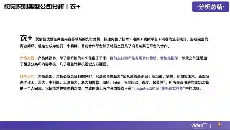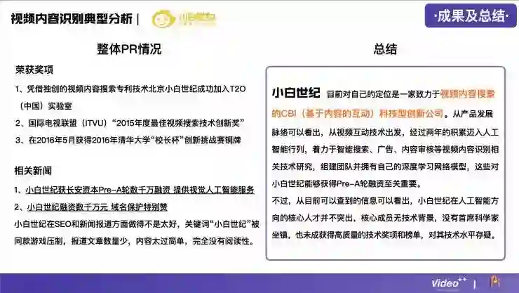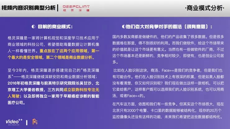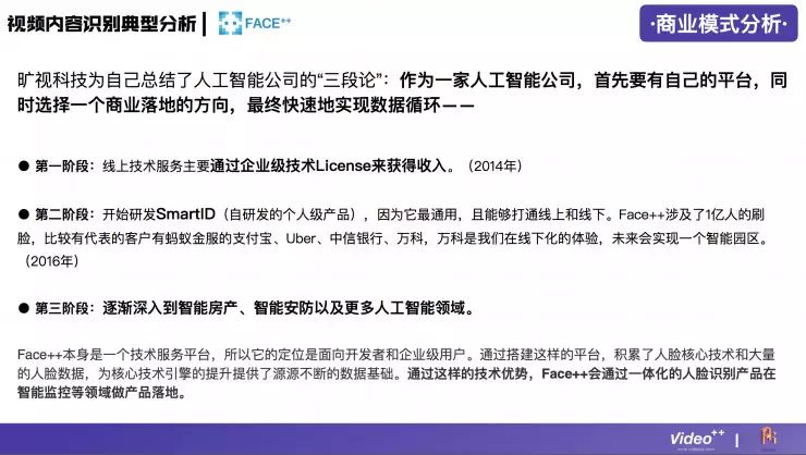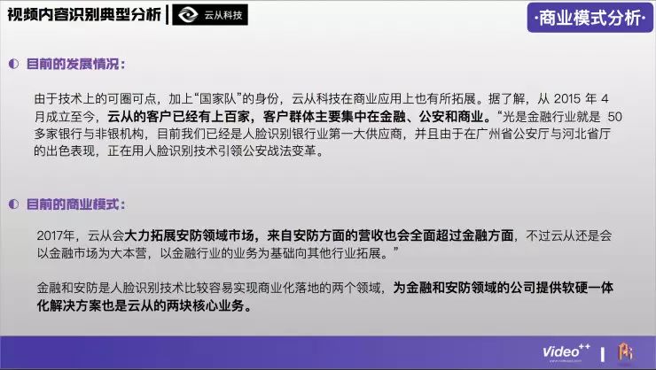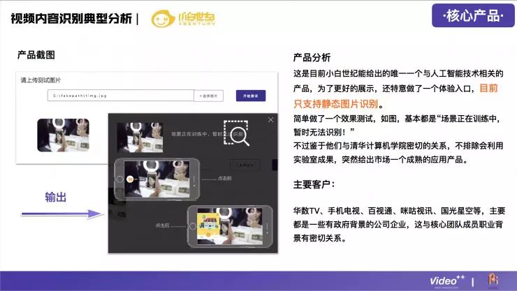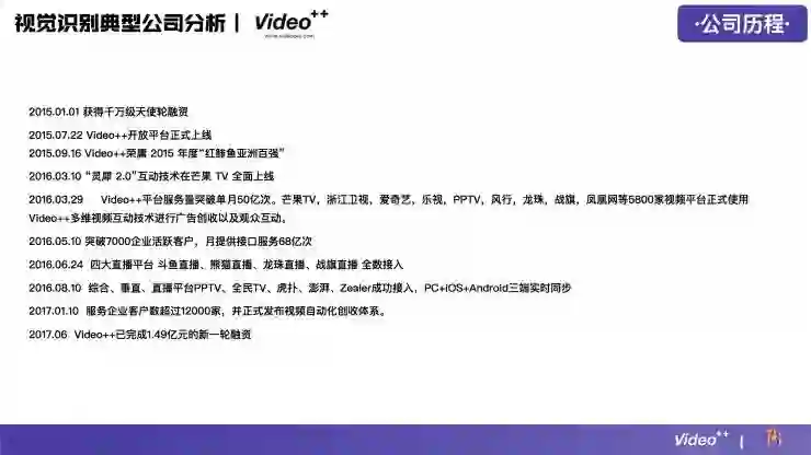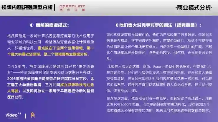 下面这份分析报告由Video++提供,并在AI研习社作以分享。这份报告并非针对人工智能领域全局观,而是解构视频行业,围绕国内视频内容识别这一垂直领域的创业公司展开讨论,从市场、产品、技术、商业模式、人才等多个维度出发,浅析人工智能技术在视频中的发展方向。