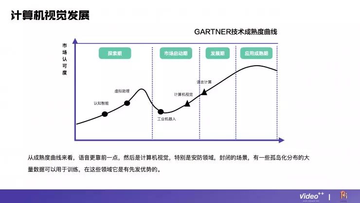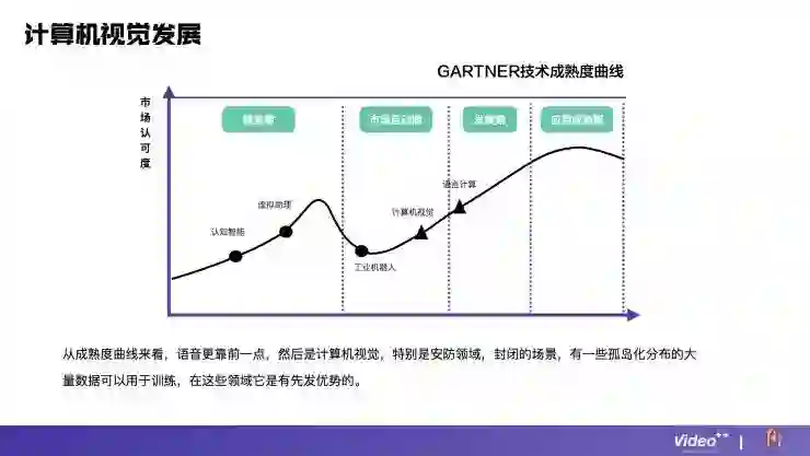 从成熟度曲线来看,计算机视觉在人工智能领域已经有了很充足的发展,仅次于语言计算。