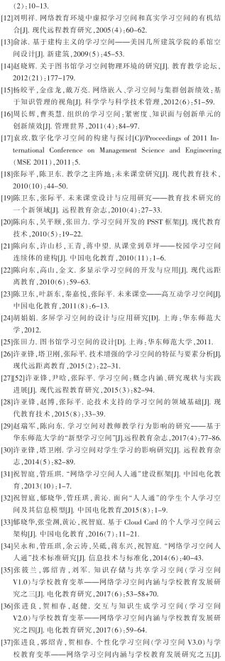 随着互联网技术、云计算和人工智能技术的快速发展,以及各种智能移动终端的迅速普及,人们的学习、生活、工作方式发生了重大变革。特别是人们的学习方式,正突破原有学习空间的局限,延伸、拓展到世界的每一个角落,泛在学习、社交学习、智慧学习、正式学习与非正式学习等,日益成为人们践行的学习方式。在技术促进学习及学习方式变革的过程中,一个重要命题越来越引起研究者的关注,即学习空间,它已然成为教育领域中的一个重要研究议题。《国家中长期教育改革和发展规划纲要(2010-2020年)》[1]明确指出,“信息技术对教育发展具有革命性影响,必须予以高度重视”。在其宏观指导下,《教育信息化十年发展规划(2011-2020年)》[2]中多次提及“信息化学习环境”;《教育信息化“十三五”规划》[3]中也多次提及“网络学习空间”。虽然国家政策文件中的用语有所差异,但它们所指涉的内涵却是相同的。