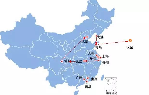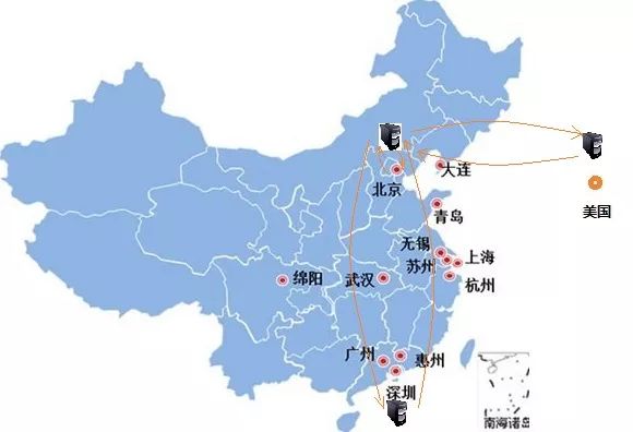 2.在不同城市根据云反射弧需求,在现实世界中为完成任务所经历的路径,例如在美国华盛顿用户通过手机提出运货需求,中国贵州运货机器人规划不同大洲的路径将货物运达到用户手中。