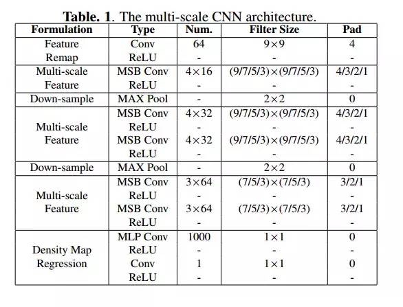# -*- coding: utf-8 -*-from keras.layers import Input, Conv2D, MaxPooling2D, concatenate, Activationfrom keras.layers.normalization import BatchNormalizationfrom keras.models import Modelfrom keras.regularizers import l2from keras.utils.vis_utils import plot_modeldef MSB(filters): """Multi-Scale Blob. Arguments: filters: int, filters num. Returns: f: function, layer func. """ params = {'activation': 'relu', 'padding': 'same', 'kernel_regularizer': l2(5e-4)} def f(x): x1 = Conv2D(filters, 9, **params)(x) x2 = Conv2D(filters, 7, **params)(x) x3 = Conv2D(filters, 5, **params)(x) x4 = Conv2D(filters, 3, **params)(x) x = concatenate([x1, x2, x3, x4]) x = BatchNormalization()(x) x = Activation('relu')(x) return x return f def MSCNN(input_shape): """Multi-scale convolutional neural network for crowd counting. Arguments: input_shape: tuple, image shape with (w, h, c). Returns: model: Model, keras model. """ inputs = Input(shape=input_shape) x = Conv2D(64, 9, activation='relu', padding='same')(inputs) x = MSB(4 * 16)(x) x = MaxPooling2D()(x) x = MSB(4 * 32)(x) x = MSB(4 * 32)(x) x = MaxPooling2D()(x) x = MSB(3 * 64)(x) x = MSB(3 * 64)(x) x = Conv2D(1000, 1, activation='relu', kernel_regularizer=l2(5e-4))(x) x = Conv2D(1, 1, activation='relu')(x) model = Model(inputs=inputs, outputs=x) return model if __name__ == '__main__': model = MSCNN((224, 224, 3)) print(model.summary()) plot_model(model, to_file='images\model.png', show_shapes=True)