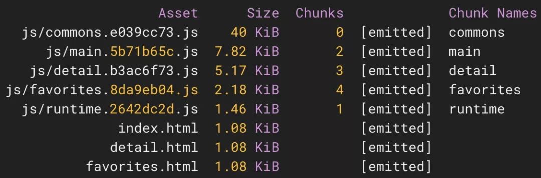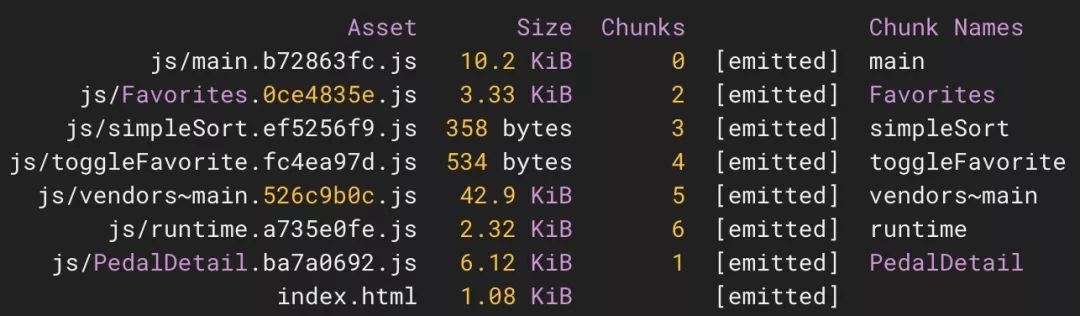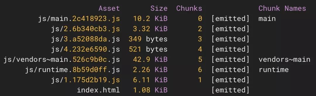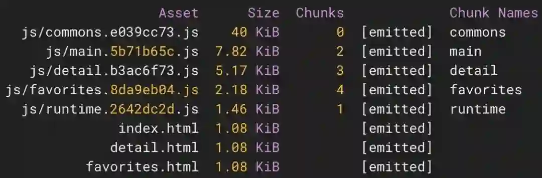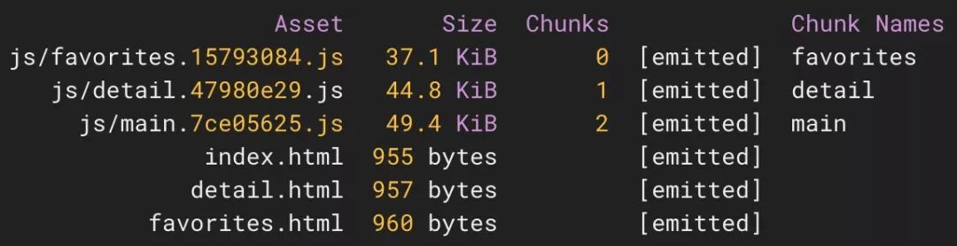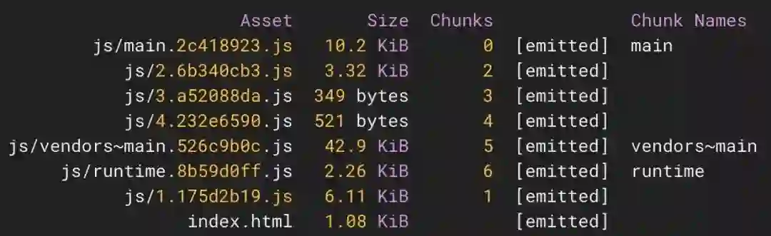 可以看出,webpack 为块分配的是 ID,而不是名称。不过这对用户来说无关紧要,但对于开发来说可能会有点问题。为了解决这个问题,我们需要使用一种称为内联指令的特殊注释让 webpack 输出文件名: