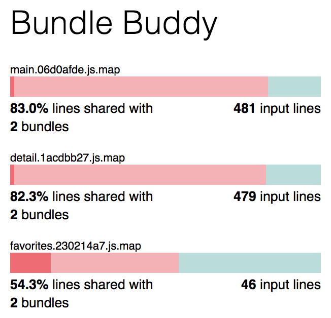 第三方脚本、运行时和共享代码已经被拆分到单独的块中,同时也减小了入口点脚本的大小。现在,Bundle Buddy 显示的结果是这样的: