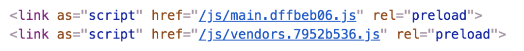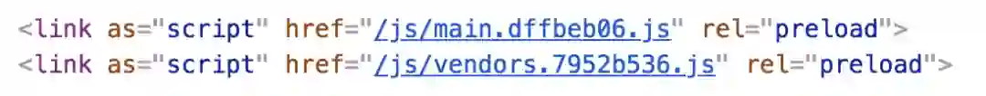 这个配置将通过< head>中的元素为 vendors 和 main 块提供预加载提示。