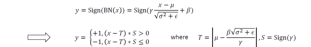 将Batch Normalization和sign函数合并起来,将浮点计算变成符号判断和数值大小比较;