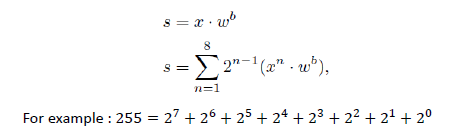 输入数据需要做normalize和二值化结构真的就无缘了吗?在FBNA论文中我们发现,可以使用如下技巧,输入数据正常归一化之后,缩放到[-128,128]的范围并取整,然后每个pixel的值用一个长度为256的一维二值化向量表示,两者关系是这个二值化向量累加求和之后的结果除以2等于这个整数值,如下所示: